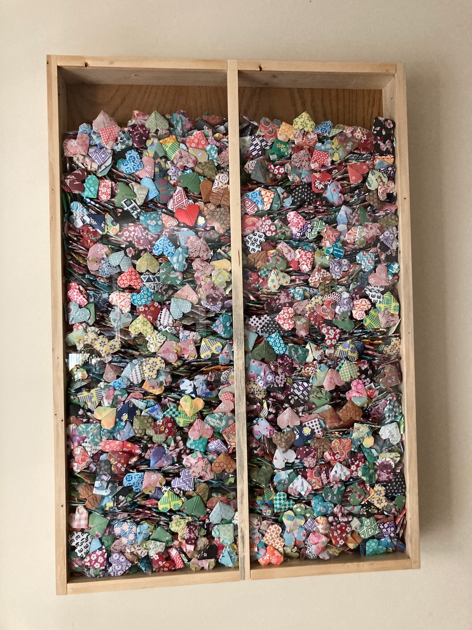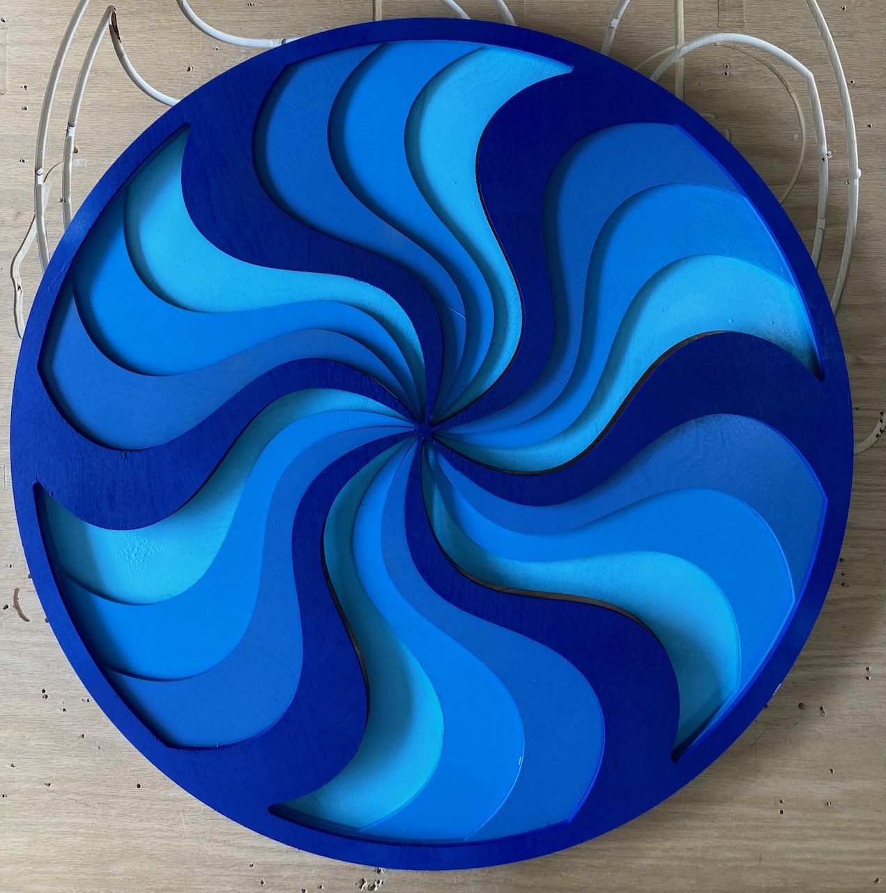 This was the first of my wall art pieces, and it came out better than I expected. It's made by cutting out four pieces of plywood with the same pattern, painting them, then stacking them slightly offset. I didn't have any plans for this piece,…