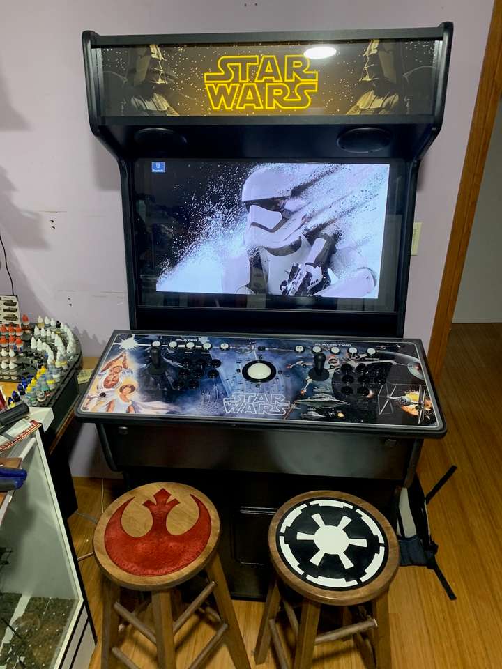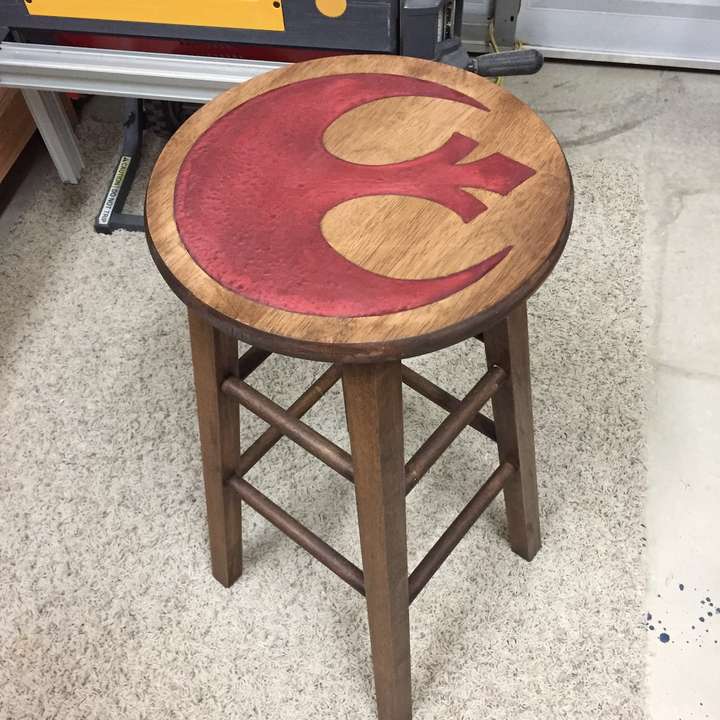 A old coworker commissioned me to make these Star Wars themed stools for him, for in front of his home Star Wars game cabinet. I bought the stools cheap online, cut the seats off, carved them on my CNC, then glued the seats back on. I had ordered a third stool just in case, and decided to just put a simple message on it. I don't know, man, they're ok. If I was to do it over, I'd make them from scratch.