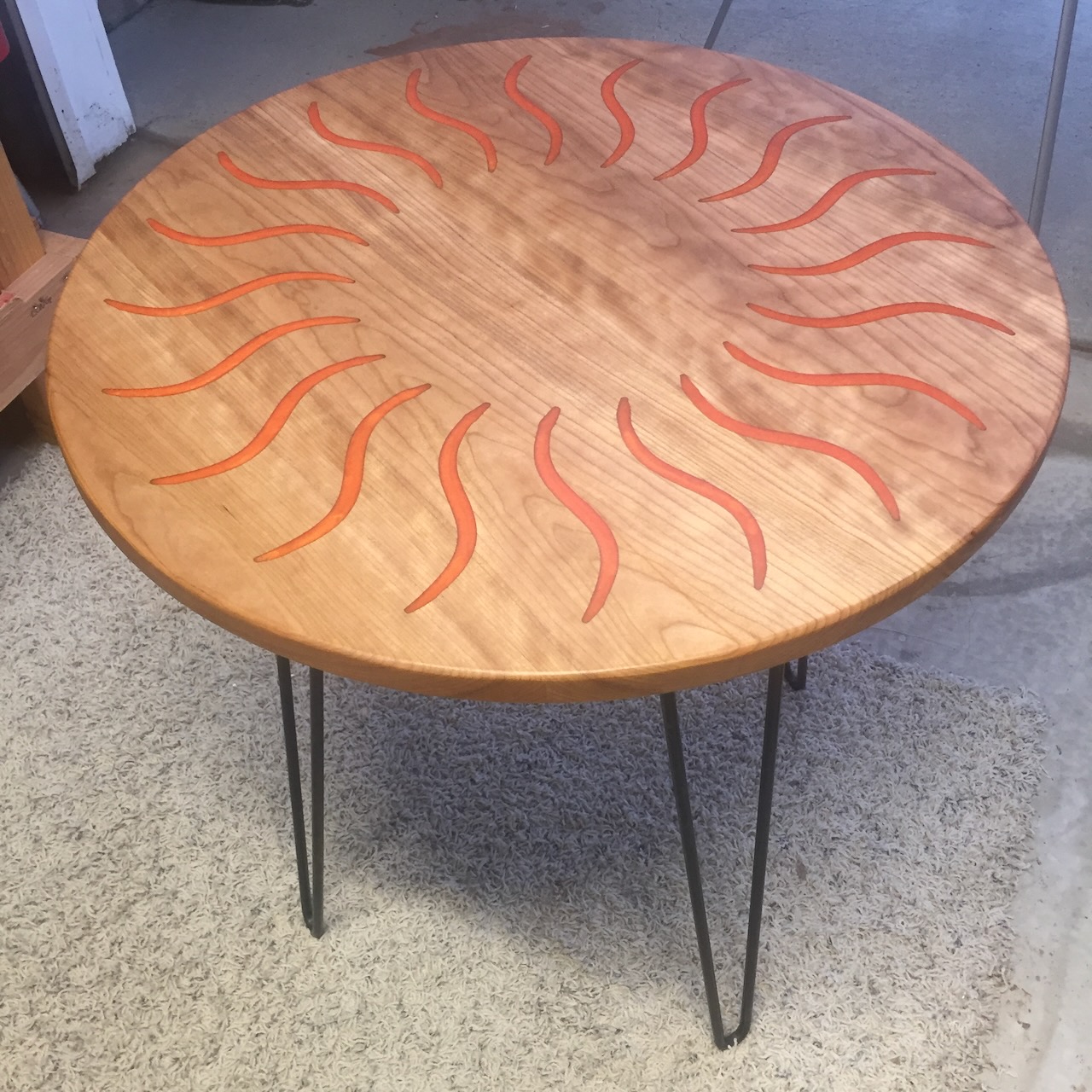 My parents comissioned this table - thanks Mom and Dad! They picked the wood and the epoxy color, I came up with a few different designs, and they chose this one. It's still in their livingroom.